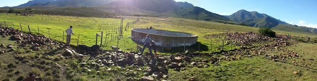 One day we joined 'oom' Jan and the farm workers going up the mountain to fix the water pipes for the sheep, as well as feeding them bales. It turned out a lovely day on the mountain.